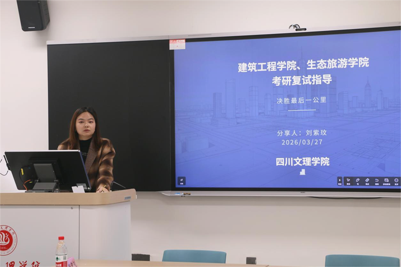 为深入推进“一站式”学生社区建设,充分发挥“文理慧启”专业教师进社区的育人实效,3月27日,学院在博文楼222智慧教室开展2026届毕业生考研复试指导活动。活动以“决胜‘研’途·破茧成蝶”为主题,旨在为考研学子提供精准指导,助力升学最后一公里。活动由学工办主任、团总支书记秦小苏主持,学院党委副书记张桢,何宏智、刘紫玟、刘金斗等专业教师及2026届考研学子参加。